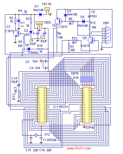 | 选择分类:当前分类——学单片机 相关联或者相类似的文章: 各地消费者协会网址、投诉电话一览表(82) ds18b20读取温度的完整程序(79) 可测晶振的1000MHz频率计(78) 音频感应无线耳机的改进(70) 电阻箱(70) ATX电源控制电路的工作原理(70) 功放三个技术指标的测量(66) ATX电源控制电路的工作原理1(66) CXA1019(CXA1191)集成电路的应用(65) 一款人体感应开关(63) LED背光灯极(52) 国外汽车音响的新技术(44) 耳机功放IC TDA1308(43) 用TDA7294作耳机放大器(42) 用UBA2014的电子镇流器(38) 电学电路试验2.0用户手册下载(36) 实用的可调三端稳压模块(30) 集成霍尔传感器简介与检测方法(27) 用DS1302+AT89C2051控制的红外遥控LED电子钟(26) Keil C51软件的安装与使用(20) 首页 前页 后页 尾页 本站推荐: | 跟我来作EZ编程器 本文是站长在无线电杂志社编辑房桦老师的鼓励下,实际动手制作成功的一款EZ的编程器,使用效果很好,为答谢广大爱好者对本站的支持:现全部资料公开,欢迎大家转载, 但请注明51测试网:如果您制作成功, 不要忘了通知。 www.51c51.com石学军 <710>AT89C51是一款应用最为广泛的8051单片机,更重要的是他具有反复烧写(FLASH)的特性。一般情况下可重复烧写1000次,这样为初学者试验提供了一个廉价的平台。为了满足广大单片机爱好者动手的需要,本人利用半个月的时间,参考国外资料,实际设计制作成功一款简单的AT89C51/52/55单片机编程器。由于单片机编程时序不同,这一款编程器仅仅支持ATMEL公司的AT89C51, AT89C52, AT89C55芯片,不支持华邦或飞利浦兼容芯片。 对于很多像我这样一些不算太年轻的从80年代组装7管半导体收音机入门的电子爱好者来说,面对单片机似乎显得有点怯场,但是事实上我以为他甚至比组装一个收音机更简单: 以下是它的硬件电路图, 稍微有一点耐心,完全可以用面包板搭焊。 为了方便大家制作,我把电路简化设计了一下: 监控芯片用IC座安装,另外找一个编程器烧写好监控程序EZ51.HEX后插入,方便调试。 烧写卡座如果购买有困难,可以直接用一个IC座。组装好后通电,用万用表检查: 1, 7805输出5V , D2 电源指示灯亮。(图中我用的是78L05) 2, DW2电压为3-5V。 4, 将Q1的基极对地短接,DW2电压为12V。 5,U1(89C51)的18,19脚电压为2.2V, 2.1V,此电压可作为电路是否起振的依据。 连接电缆用9对9一头公一头母的串口线, 注意市场上有些串口线的两头2,3脚是交叉的,最好用万用表检查一下是否为一一对应。如果没有串口线,也可拆一个老式的串口鼠标自制,只要两头把2,3,5脚连接好即可。本电路对元件没有特殊要求, 电阻用1/8W普通碳膜,三极管我用的是2SA1015,2SC1815, 实际上很多小功率管都可以, 例如9014,9015。只是需要注意他们的管脚排列区别。 二极管1N4148可以用1N4004替代。另外12V稳压管最好挑选一下,精度要求为5%以内。11.0592M晶体有条件的话应当测试一下,市场零售的晶体有些不起振。 <269>这款编程器的烧写软件EZ31.EXE界面很简单;全兼容于WINDOWS9X-2000。仅有几个按钮,分别为打开文件(SEND),读芯片(READ), 退出(EXIT), COM选择,加密(LOCK CODE),以及校验(FAST VERILY)。大家用一下就知道了。注意目前提供下载的为它的升级版本ez4.0自动监测端口号和芯片。 使用更简单! <116>连接好编程器的电源以及串口线,并插入烧写的芯片,点击COM1或COM2(以实际连接为准,本例中我连接的是COM2), 窗口右下脚显示 89C51Found。 此时应当看到信号指示灯D6每2秒亮一下,表示联机工作。 选择一个需要烧写的hex文件开始烧写,如果一切正常,显示的界面如上图所示。 双面板超级小型的pcb;注意监控芯片在反面贴片安装。因此整个电路板仅仅比火柴盒子稍稍大一点,可能是您所能见到最小巧的编程器了。是不是非常漂亮? <28> 看看这张图: 想必您一定搞得定了!一共不到30个零件,确实很ez,按组装一块连插件到焊接测试只要半小时。<28>元件清单 大家看看插件的位置图吧:如果不清楚,给我写信给您搞一个更清楚的。 成品的照片,它的结构相当简练,一共才用了不到30个零件,简直到了增之一分则太肥,减之一分则太瘦的程度。 还不快拿起烙铁来, 跟我一起作? PCB的照片:为了不让大家失望排版还不算太难看:(注意中间一排六个白黑相间的半圆圆圈,是四个10UF/50V电解电容,和两个发光管的位置。超级菜鸟注意了:这几个零件都是长脚为正,短脚为负,具体到电路板上则白色的为负极,黑色的为正极了。 电路中R18为10K*8的一个排阻,请看上面照片,在一排电容和卡座的中间。他的公共脚插在向边界的方向。 2:安装二极管,三个1N4148 和一个12V稳压管DW2。请仔细看管子的表面有字:稳压管印有12V字样,千万别给搞混了。二极管是有极性的, 二极管的黑头方向插向pcb的印有白色的一边就对了:元件插到位后焊接剪脚: 3:安装2个104和2个30p电容;11。0592晶体, 这些都没有方向性随便插:4:插入三极管。电解电容,发光管:注意这些东西都是有极性的:如果搞反了可不行。电解电容和发光管很好办,都是负极向下。三极管(2个2SC1815,一个2SA1015,)以及一个78L05的稳压IC:他们的方向在PCB上可以看到,屁股的方向就是半圆圈的方向。 5:插入排阻(排阻有一个白点的一端是公共端,他的位置在靠近PCB边源的一端;电源插座,232插座就不用说了。 6:插监控芯片的插座。 7:插烧写卡座。由于他和监控芯片是面对面的, 因此必须先焊接监控芯片插座,最后焊烧写卡座。否则等会不好动烙铁了