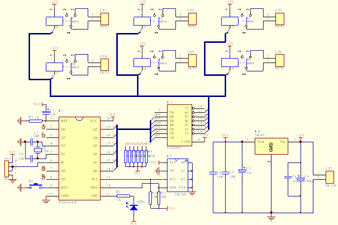 以FY0202A组成的双稳态输出为例,其典型电路如下: