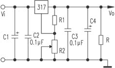 要解决317稳压块最小稳定工作电流的问题,可以通过设定R1和R2阻值的大小,而使317稳压块空载时输出的电流大于或等于其最小稳定工作电流,从而保证317稳压块在空载时能够稳定地工作。此时,只要保证Vo/(R1+R2)≥1.5mA,就可以保证317稳压块在空载时能够稳定地工作。上式中的1.5mA为317稳压块的最小稳定工作电流。当然,只要能保证317稳压块在空载时能够稳定地工作,Vo/(R1+R2)的值也可以设定为大于1.5mA的任意值。