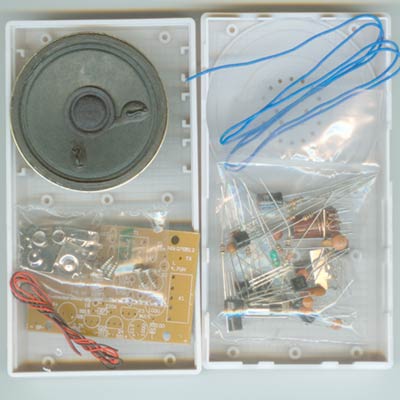6、套件中已经有电路原理图,制作注意事项,问题解决方法等说明。最后要说明的是:一个人买的话,建议买两套,否则,只有一套的话,你就会只能自己一个人讲没有人收听,而你又收不到别人讲话。当然,你可以自由改动发挥,很容易再做成一个小功放、超再生收音机(改线圈)、喊话器(加1元钱的话筒)、断线报警器、电子小喇叭等,当然,这些就请大家自己再参考《电子报》《北京电子报》《无线电》《电子世界》《家电维修》《电子文摘》《广东电子》《家庭电子》……